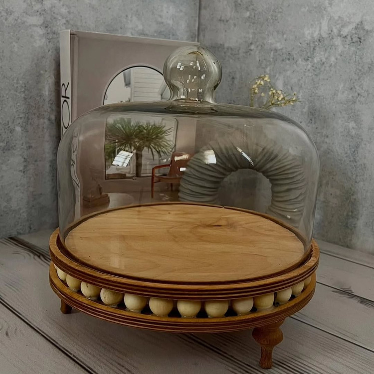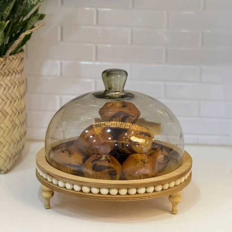 این ظرف نیست، یک شاهکار هنریه! کاپکیکهات وقتی برن تو این، خودشون هم تعجب میکنن از شیک شدنشون! پایه چوبی با تزئین مرواریدی درب شیشهای خوشفرم مناسب برای شیرینی، نون، میوه خشک، بیسکوییت، یا حتی دکور میز بذارش وسط میز و دیگه لازم نیست بگی شیرینی بیارم یا نه؛ خودش همهچی رو میگه!