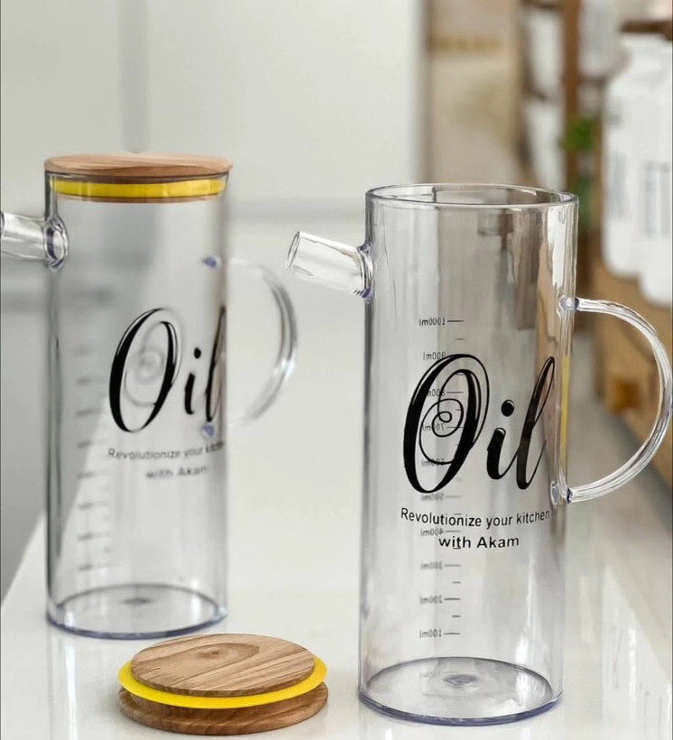 روغنریز آکریلیک یک لیتری با درب چوبی، انتخابی خاص برای آشپزخانههای مدرن 🍶
