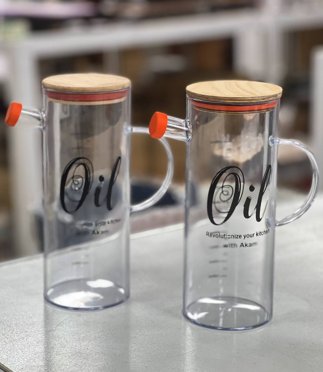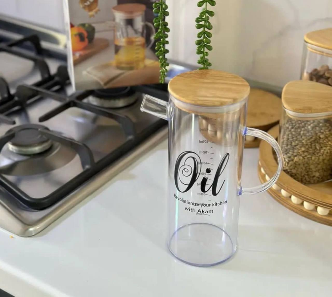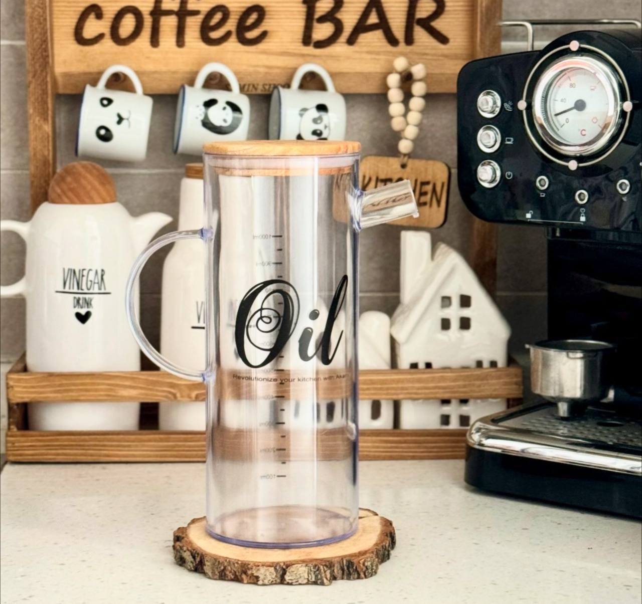 روغنریز آکریلیک یک لیتری با درب چوبی، انتخابی خاص برای آشپزخانههای مدرن 🍶
