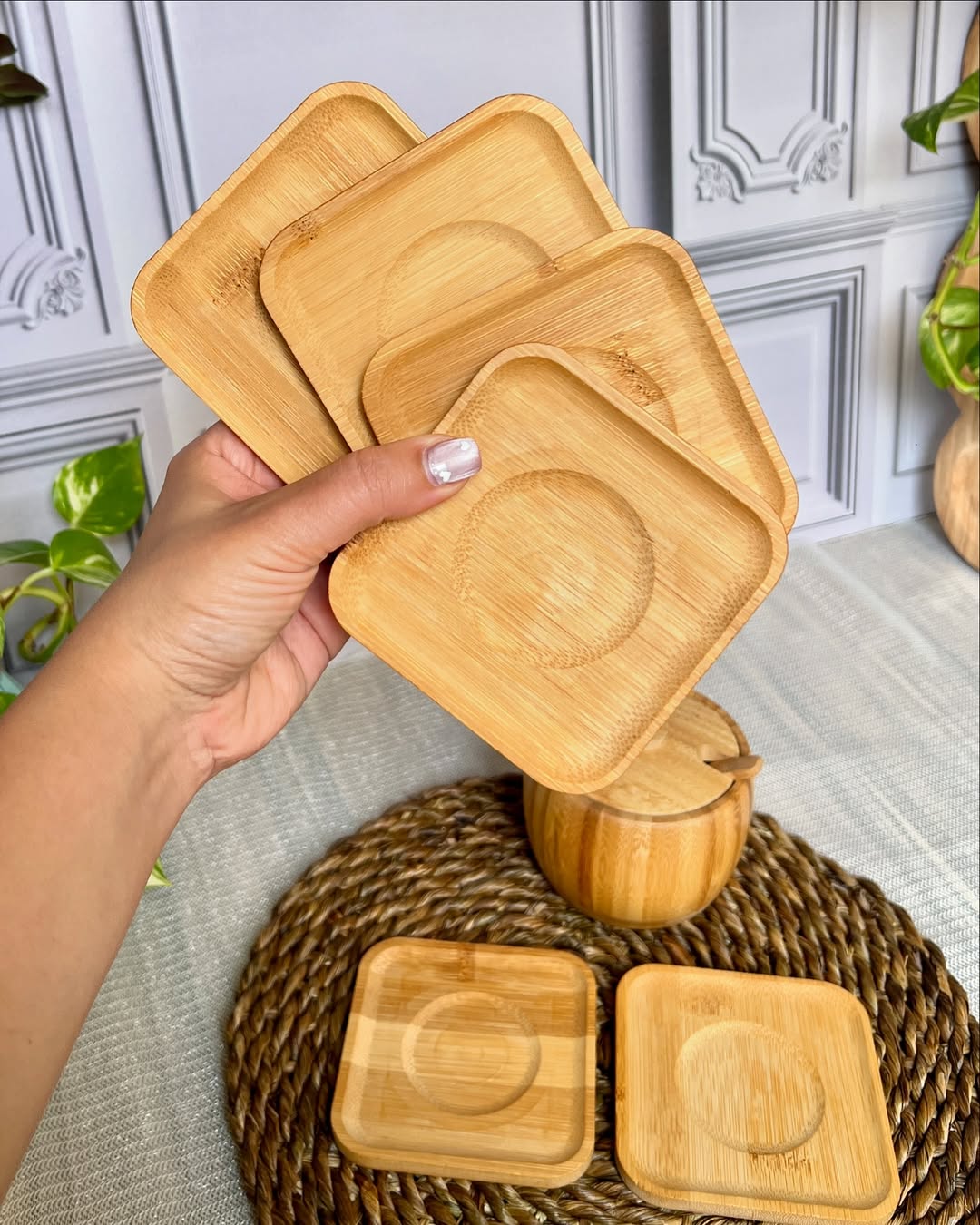 زیرلیوانی بامبو مربع