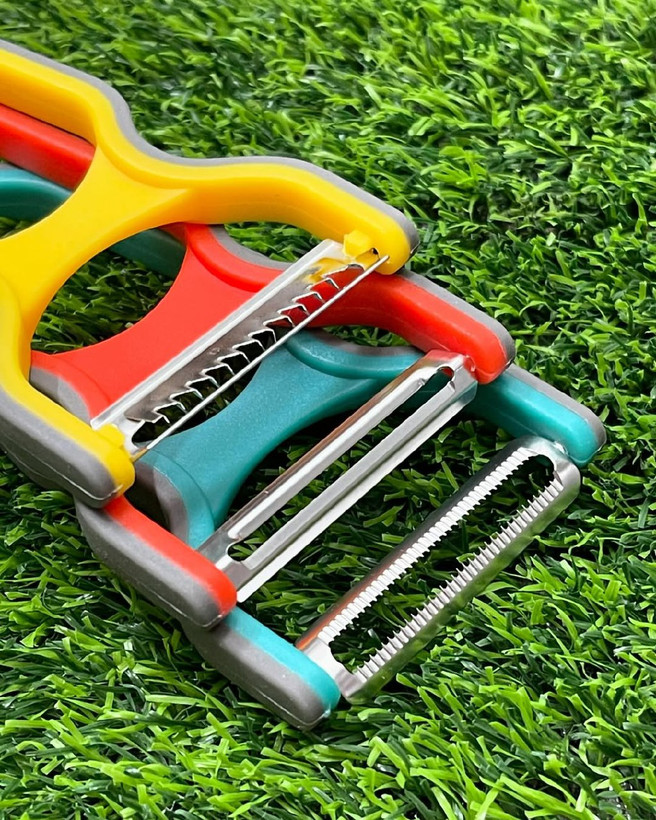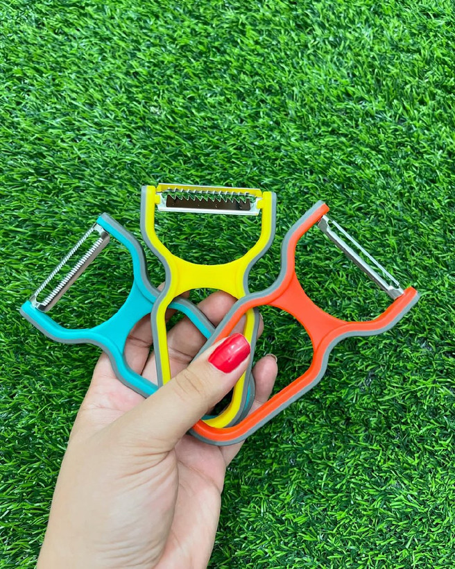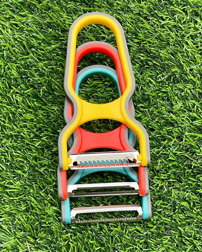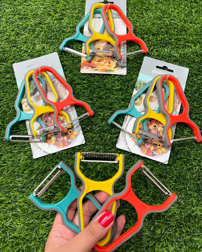 ست ۳ عددی پوستگیر و رشته کن ژیلتی از برند وارداتی شنگیا . شامل دو عدد پوستگیر(یکی تیغه صاف،یکی تیغه مجعد) و یک عدد هم رشته کن . جنس: پلاستیک با تیغه های بسیار تیز .