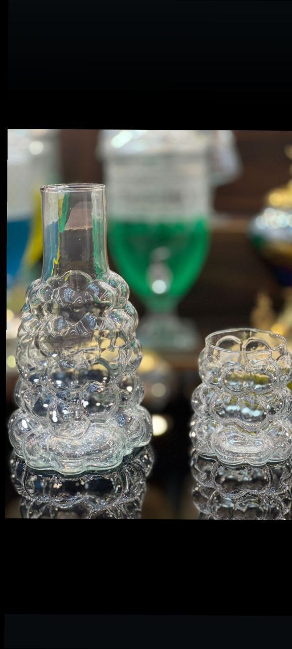یک کار خاص و فانتزی که هم کاربردیه هم کادوییِ پارچ شب حبابی لیوان دار جنس شیشه ای دارای جعبه طراحی فوق العاده